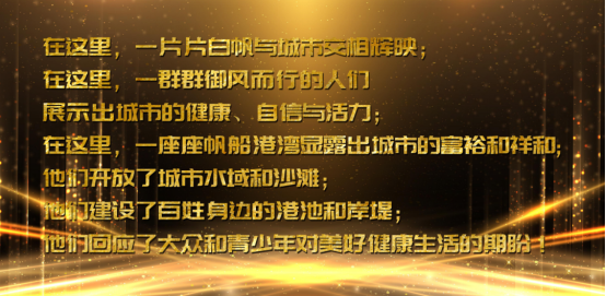 帆船之夜還感謝了秦皇島市人民政府、青島市人民政府、珠海市人民政府、寧波東錢湖旅游度假區(qū)管理委員會(huì)、江蘇省吳江東太湖生態(tài)旅游度假區(qū)管理辦公室為在帆船推廣普及的過程中所奉獻(xiàn)出的城市和地區(qū)力量。
