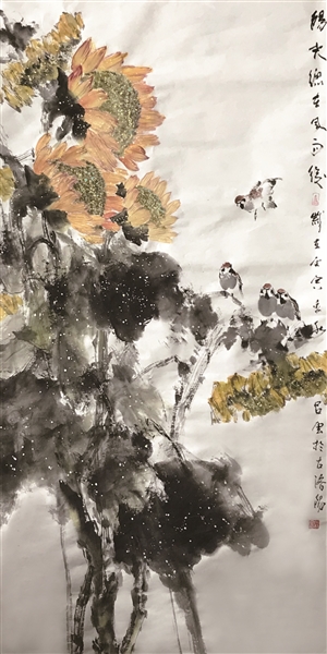 呂桂云十分懂得營造單純畫面的現(xiàn)代形式美感。其花鳥畫中的形式因素,無論是鳥、花卉或他物,皆以有利于營造整體的形式關(guān)系為度,絕不妄添多余之物。呂桂云涉筆不取陳格,不落俗格,其獨標(biāo)異格,既有新穎的現(xiàn)代氣息,又有濃郁的古雅意趣。