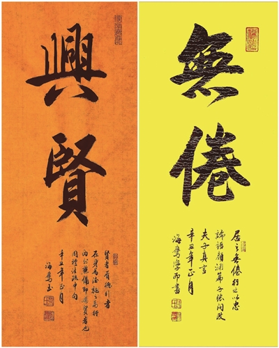 書法是中華優(yōu)秀傳統(tǒng)文化的重要構(gòu)成之一,也是人類文明的瑰寶。葛海鷹對中國優(yōu)秀傳統(tǒng)文化擁有十分自信的態(tài)度。在他看來,學習書法既是個人的興趣愛好和修身養(yǎng)性良方,也是為傳承和弘揚中華優(yōu)秀傳統(tǒng)文化、彰顯人類文明的光輝盡一份力,更是堅定我們文化自信的一種具體實踐。葛海鷹將自己的書齋取名“三忘齋”,即是借用《論語》“發(fā)憤忘食,樂以忘憂,不知老之將至”句意,以激勵自己不懈努力,追求忘我境界。