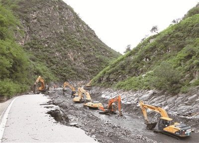 8月5日16時,隨著北京建工機施集團副總經(jīng)理劉海龍趕到史家營鄉(xiāng)政府向鄉(xiāng)長匯報搶險結果,標志著經(jīng)過30小時鏖戰(zhàn),北京建工機施集團全面打通了賈金路賈峪口至史家營鄉(xiāng)18公里交通生命線。