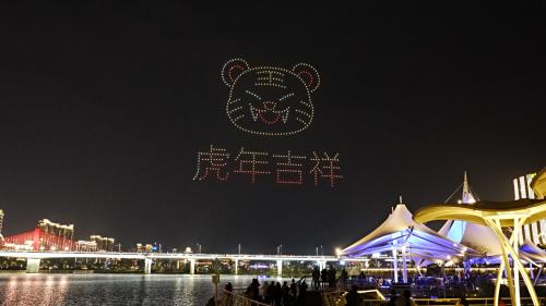 當(dāng)晚,500架無人機(jī)在漳州九龍江畔龍江水幕廣場(chǎng)伴隨著慷慨激昂的水幕秀-片仔癀專場(chǎng)的音樂,開始起飛,整齊變換燈光,以夜空為幕,“熒光”為筆,變換出各式各樣的圖案。隨著美麗的漳州市花“水仙花”緩緩擺動(dòng),“孔明燈”帶著片仔癀的美好祝愿飄蕩在夜幕,“祝全市人民元宵快樂”“虎年吉祥”等字樣陸續(xù)出現(xiàn),點(diǎn)燃了在場(chǎng)所有人的情感共鳴,讓現(xiàn)場(chǎng)立刻引起一陣陣歡呼聲。精彩的表演吸引了眾多市民和游客駐足觀看、拍攝,并記錄每個(gè)精彩的瞬間。