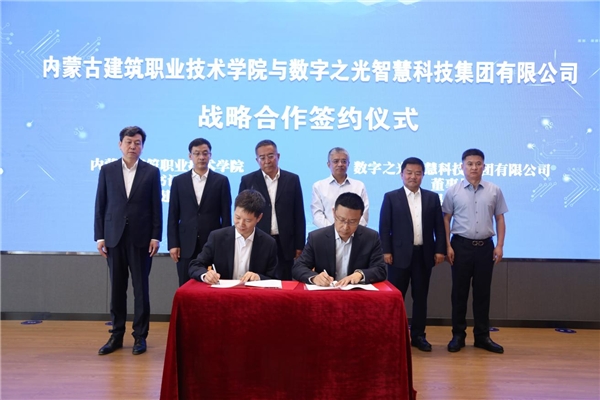牛建剛和數(shù)字之光智慧科技集團(tuán)有限公司董事長(zhǎng)吳傳炎代表雙方簽約