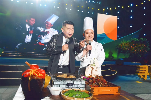 客家韻、紅土風(fēng)、東江源、橘鄉(xiāng)情是尋烏縣創(chuàng)新塑造的四大品牌,其中,客家韻,是記憶,是鄉(xiāng)愁,更是傳承。尋烏是客家聚居地,勤勞智慧的客家人創(chuàng)造出了一道道客家美味,它們既是家鄉(xiāng)的滋味,也蘊藏著尋烏人的精神?;顒蝇F(xiàn)場,尋烏賓館廚師何志文向主持人以及現(xiàn)場觀眾分別制作、介紹了5道代表尋烏精神的美食,好客精神—客家米酒,奮斗精神—羊望三省,創(chuàng)新精神—客家釀豆腐(麻包豆腐),友愛精神—客家燜缸菜,