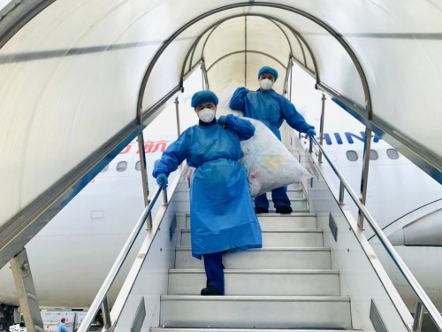 打掃完一個航班,帶著客艙垃圾下機(jī),“客艙美容師”已經(jīng)滿頭大汗。