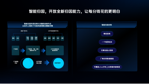 其中一個新的亮點(diǎn)是智能歸因能力升級。智能歸因作為不依賴于設(shè)備ID的系統(tǒng)級服務(wù),在把握APP不同生命周期的基礎(chǔ)上結(jié)合用戶生命周期特點(diǎn),以vivo全域效果優(yōu)化視角為客戶提供生態(tài)全域增長服務(wù),呈現(xiàn)更全面的用戶行為鏈路,共創(chuàng)更多營銷可能性。