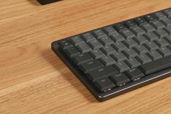 首先是大家最好奇的一點(diǎn):它憑什么沒有聲音?羅技MX Mechanical系列采用的是機(jī)械矮軸,矮軸的好處就是在保留了機(jī)械鍵盤反饋感的同時(shí),盡可能地減少噪音。在羅技官方支持的青紅茶軸內(nèi),你只要選擇了茶軸和紅軸,打字時(shí)的噪聲都是在一個(gè)非??煽氐姆秶鷥?nèi)的。輔以弧面雙色鍵帽和鋁制金屬磨砂面板,質(zhì)感很突出,商務(wù)感拉滿。