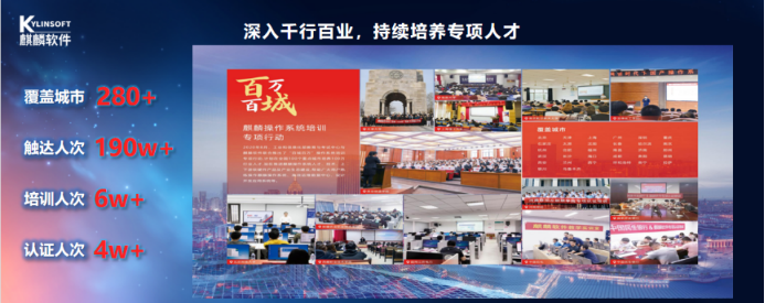 人才是基礎。黨的二十大報告中強調“要堅持教育優(yōu)先發(fā)展、科技自立自強、人才引領驅動”。會上,工業(yè)和信息化部教育與考試中心培訓處處長譚志彬發(fā)布了《百城百萬人才生態(tài)建設成果》。報告指出,自工業(yè)和信息化部教育與考試中心聯(lián)合麒麟軟件推出“百城百萬”操作系統(tǒng)培訓專項行動以來,目前已覆蓋城市280+,累積培養(yǎng)操作系統(tǒng)專業(yè)人才6萬+,為網(wǎng)信產(chǎn)業(yè)可持續(xù)發(fā)展貢獻人才支撐。