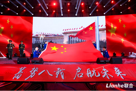 盛典當中舉行了授旗和升國旗儀式,曾于2023年3月4日在天安門廣場上空飄揚過的國旗、于2023年3月4日在天安門廣場上揮舞過的“天下第一刀”,帶著國家榮譽在聯合企業(yè)集團八周年慶典上繼續(xù)履行了它們的使命。整場儀式莊嚴肅穆,現場嘉賓面向鮮紅的國旗一同唱響國歌。激昂嘹亮的國歌,激蕩拳拳報國之心,聯合企業(yè)集團也將用更堅實堅定的步履、更振奮人心的號召,升華“企業(yè)家精神”,汲取前行的力量,融入經濟社會發(fā)展大局,使其成為奮進新征程的時代號角。