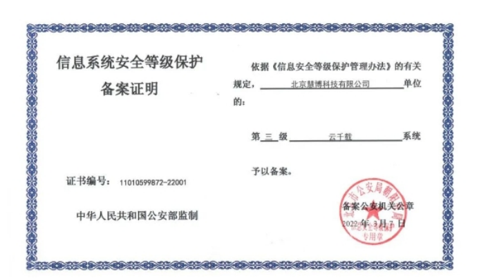 (慧博等保三級(jí)認(rèn)證證書(shū))