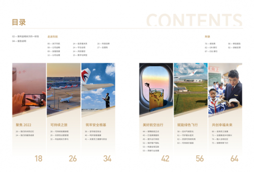 向陽而行”為主題,從“筑牢安全根基”、“美好航空出行”、“賦能綠色飛行”、“共創(chuàng)幸福未來”四個主題篇章,系統(tǒng)展示東航2022年在環(huán)境、社會、經濟等方面的履責態(tài)度和履責成效。